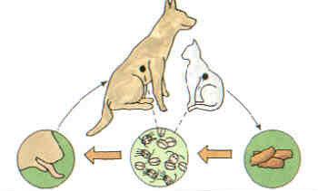 Giardien gehören zu den Urtierchen und heften sich an die Darmwand an und erzeugen schleimige Durchfälle. Sie vermehren sich durch Längsteilung der birnenförmigen Stadien und bilden Dauerstadien mit Geißeln aus. Die Dauerstadien (Zysten) werden mit dem Kot ausgeschieden und führen zu Neuinfektionen.